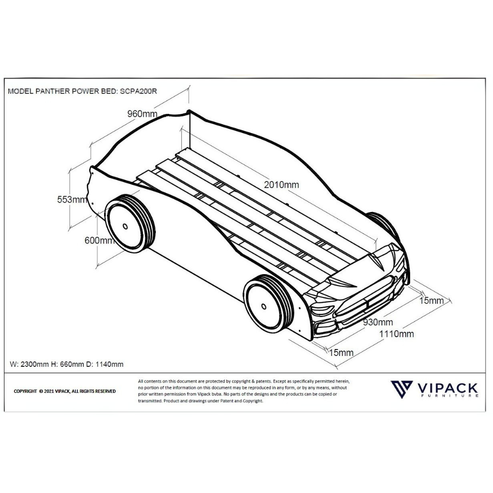 VIPACK Sporty Panther Power Bed 90 X 200cm - Red